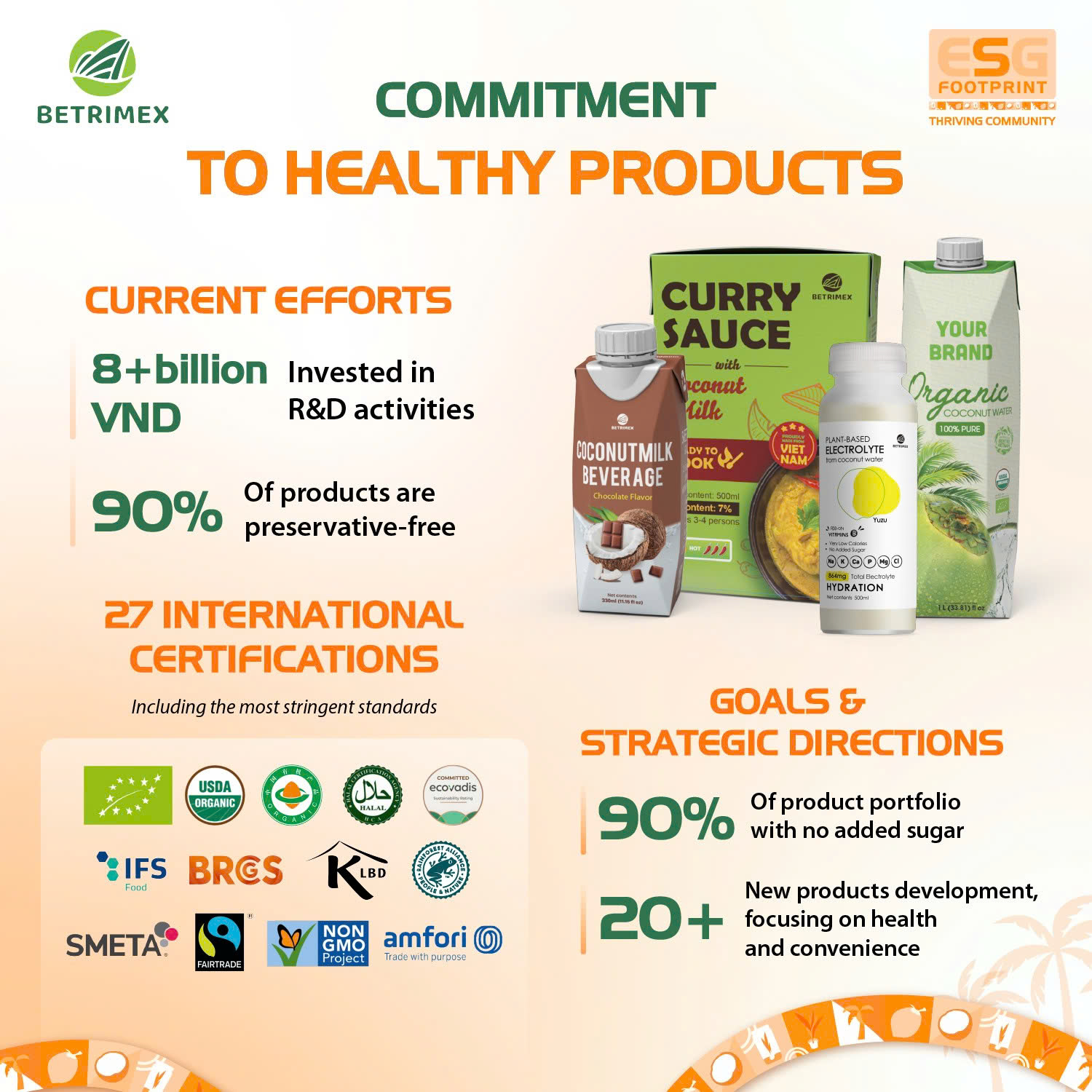 At Betrimex, we believe that healthy products are the cornerstone of sustainable development. Quality and credibility are not only top priorities but also enduring commitments embedded in every aspect of our production and business operations — reflecting our responsibility to consumers, communities, and the environment.