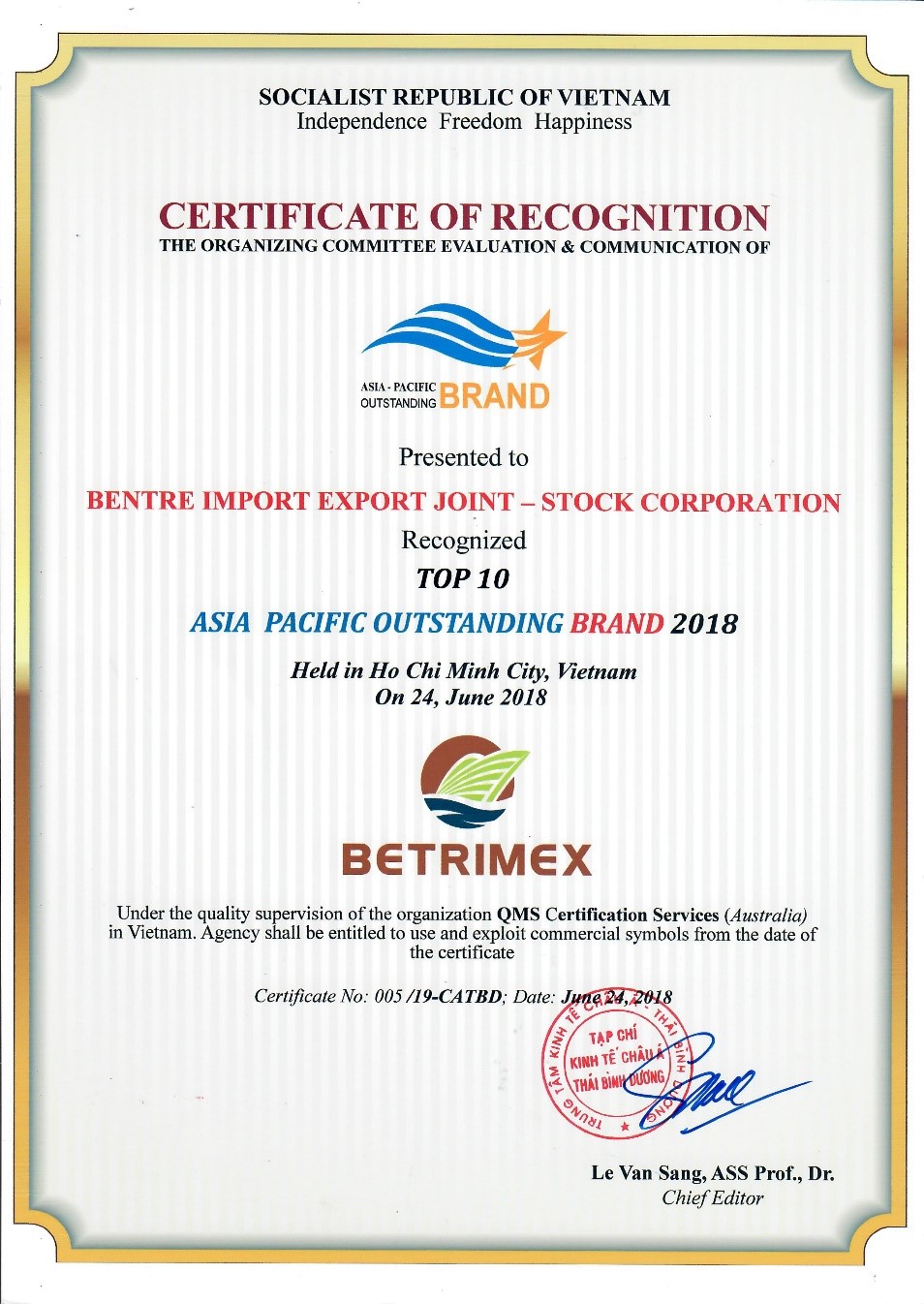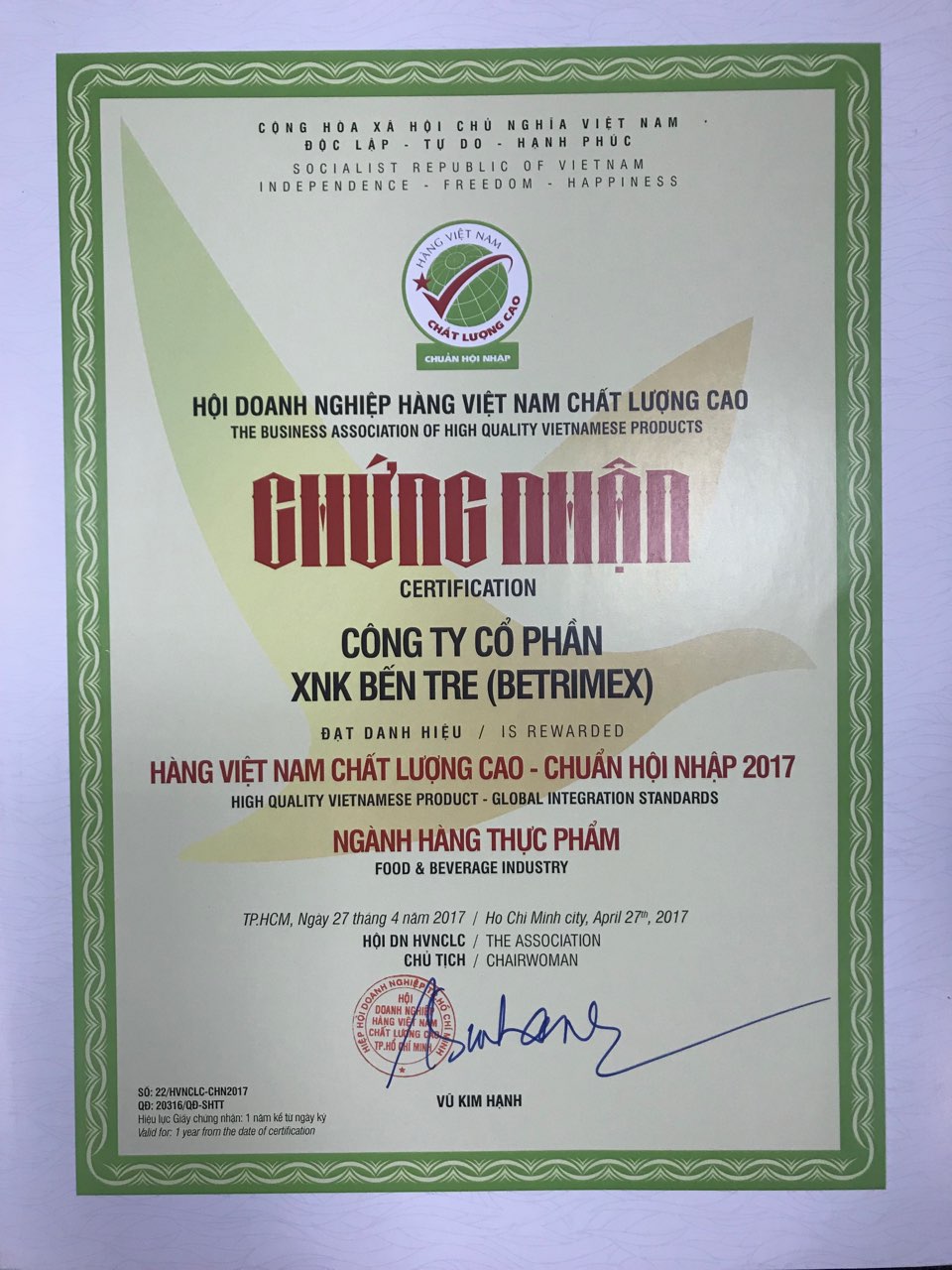 Creating high quality products for consumers, sharing with coconut farmers, accompanying the socioeconomic development is always considered as top priority of Betrimex. With many activities are implemented, Betrimex is honored to achieve outstanding achievements and is a member of prestigious domestic and international organizations.