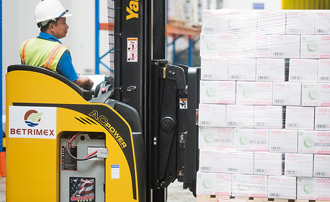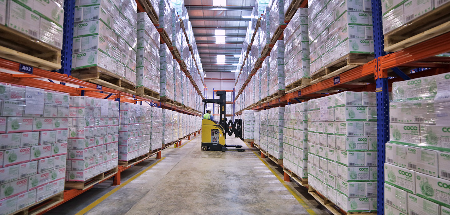 Shelves area is about 5,000 m2 with the number of shelves is more than 4,000 pallets. Capacity: 3 million liters of final products