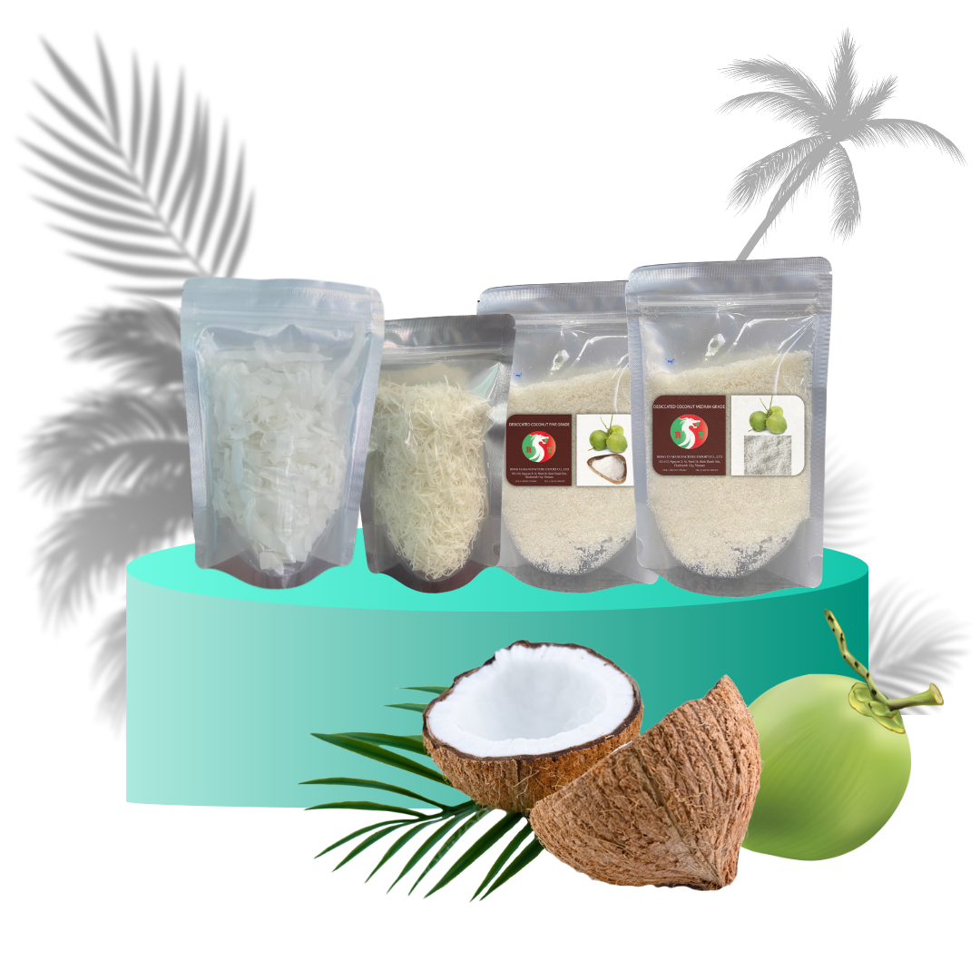Made from 100% premium white coconut meat, our desiccated coconut products are processed using modern equipment that retains the natural aroma and taste of fresh coconut. Available in various grades (Fine, Medium, Chips, and Flakes), our products meet international food safety certifications including HACCP, ISO 22000, and FDA standards, making them ideal for confectionery industry and food processing applications.