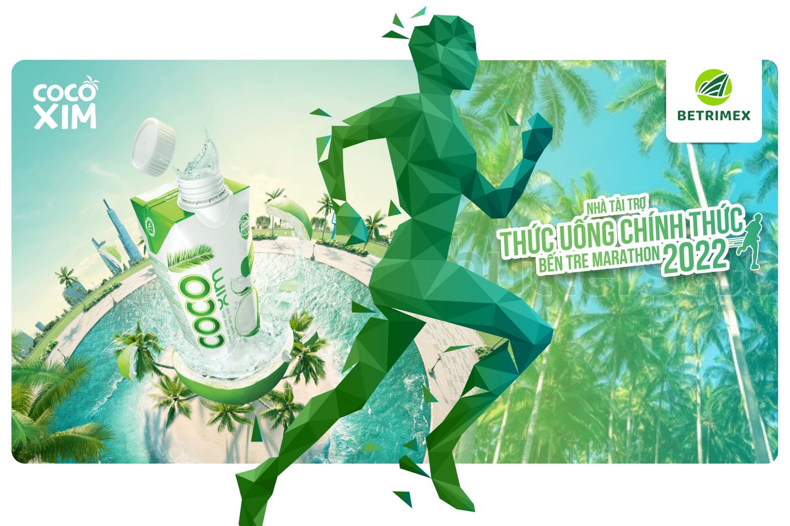 Nước dừa được coi là một phiên bản tự nhiên của thức uống thể thao, có công dụng bổ sung khoáng chất, cân bằng điện giải, bù nước tức thì, tăng cường sức bền cho cơ và thanh lọc cơ thể như một loại nước detox. Sở dĩ nước dừa có những lợi ích này chính là nhờ 5 khoáng chất vốn có trong trái dừa tươi (Kali, Natri, Magie, Canxi, Photpho). Nước dừa Cocoxim - một thương hiệu của Betrimex được làm từ 100% nước dừa Bến Tre nguyên chất. Đây là một trong số ít các doanh nghiệp ứng dụng công nghệ tiệt trùng UHT trực tiếp, cho phép giữ nguyên hương vị, dưỡng chất và độ tươi ngon của nước dừa tự nhiên. Với sản phẩm dạng đóng hộp tiện dụng mọi lúc mọi nơi, Cocoxim có thể đáp ứng kịp thời nhu cầu bổ sung năng lượng cấp tốc cho các VĐV trong suốt thời gian thi đấu tại Bến Tre Marathon 2022.