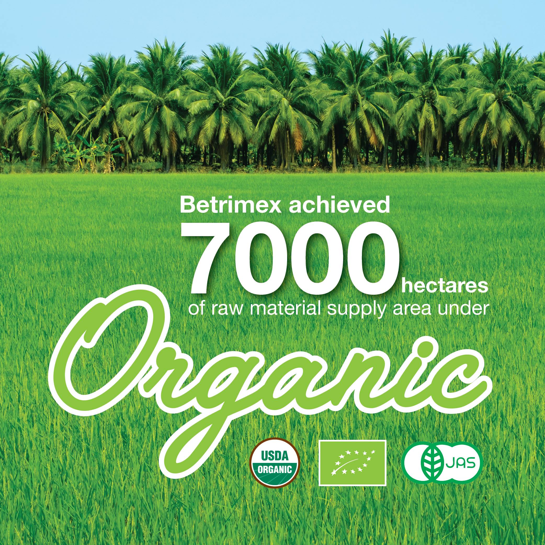 Đến nay, vùng nguyên liệu của Betrimex đã đạt chứng nhận Organic (EU, USDA, Úc, Nhật Bản, Hàn Quốc), đảm bảo nguyên liệu đầu vào đạt chất lượng tốt nhất. Ngoài mục tiêu cho sản phẩm sạch, trồng dừa theo phương pháp hữu cơ còn giúp cây dừa chống chịu được hạn mặn tốt hơn. Chỉ có trân trọng đất mẹ thì mới nhận được những phần tinh hoa nhất của tự nhiên. Đó là động lực thúc đẩy chúng tôi tham gia vào việc sản xuất và kinh doanh sản phẩm từ dừa Bến Tre.