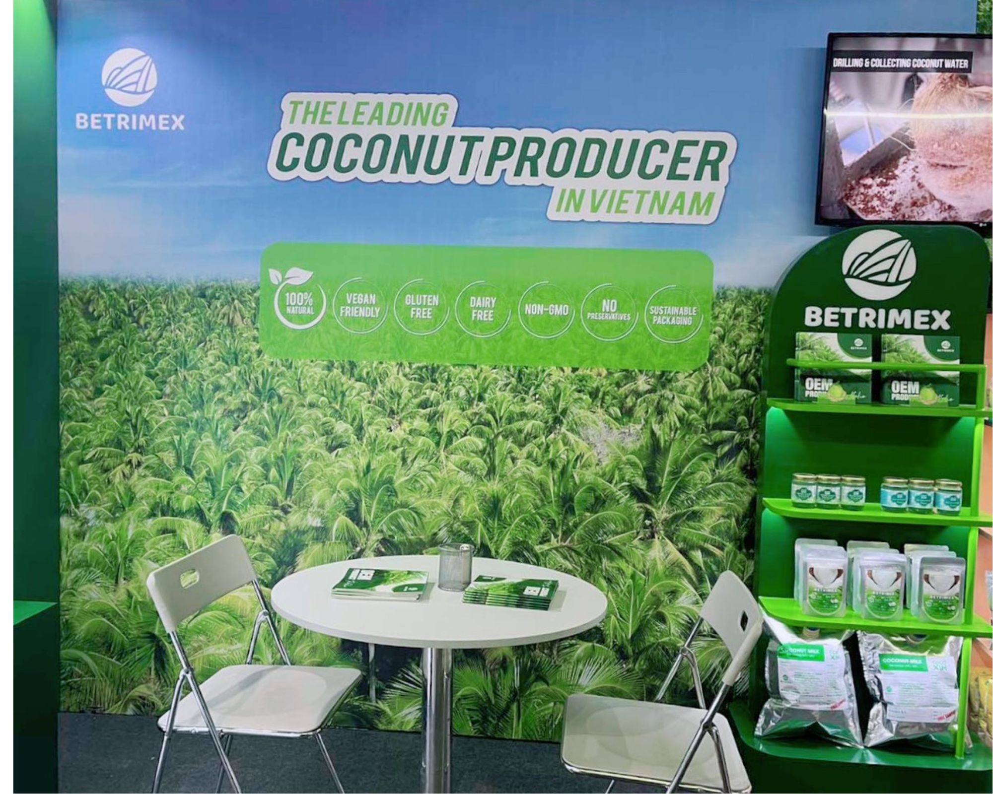 Sự chuẩn bị chỉnh chu về khu vực trưng bày, sự chuyên nghiệp của đội ngũ bán hàng cùng với các sản phẩm đã được khẳng định tại hơn 60 quốc gia, Betrimex tự hào đến triển lãm với vị thế một doanh nghiệp xuất khẩu mạnh và uy tín hàng đầu ngành dừa.