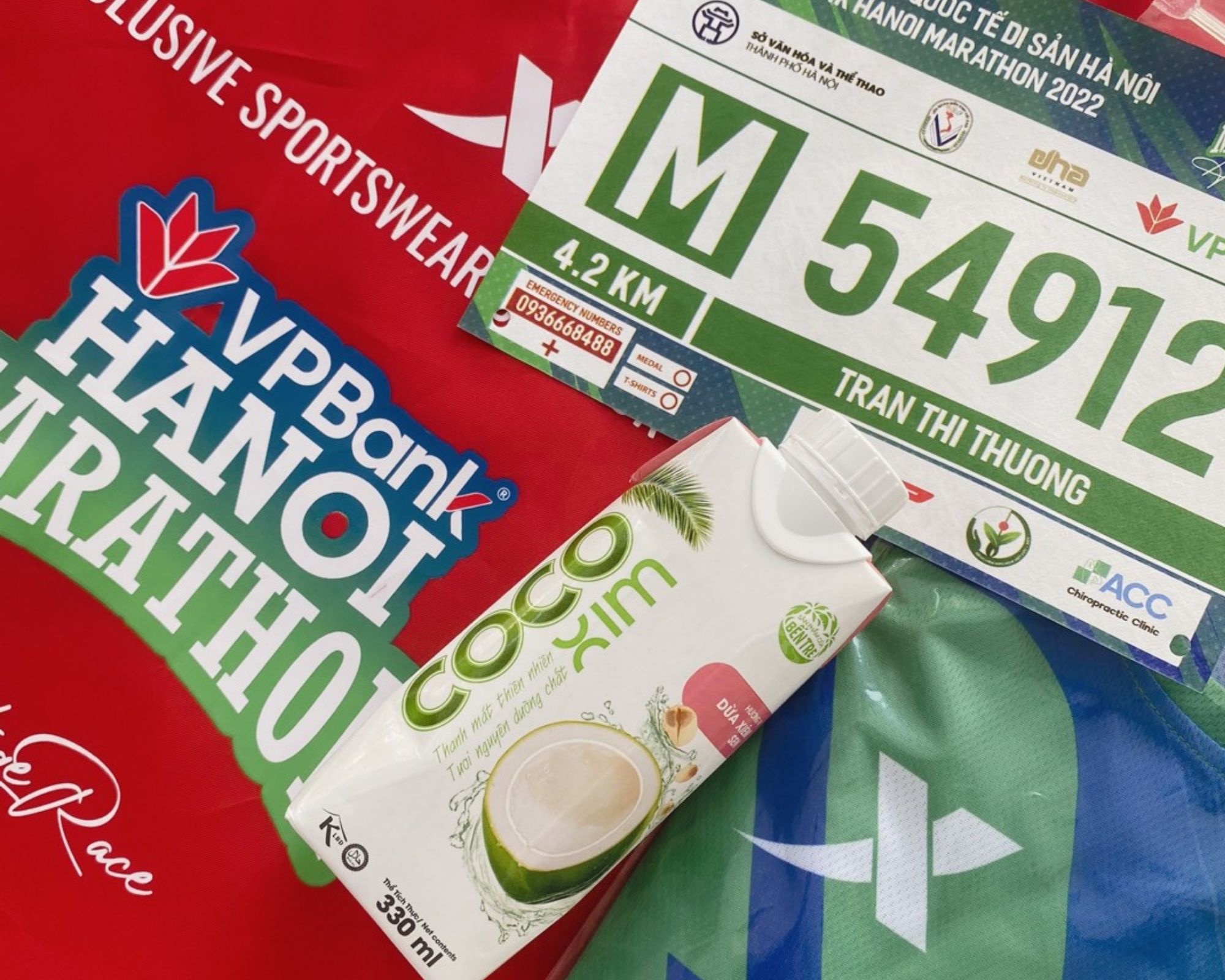 Từ ngày 14-16/10, Cocoxim đã mang sản phẩm nước dừa của mình đến với VPBANK HANOI MARATHON - giải marathon chuyên nghiệp hàng đầu của Việt Nam. Trong vai trò nhà tài trợ thức uống chính thức, Cocoxim đã có mặt trong hơn 10,000 bộ race kit và tiếp nước tức thời cho các vận động viên tại khu vực về đích, với 2 dòng sản phẩm mới nổi bật - Cocoxim Xiêm sen dung tích 1000ml và Cocoxim Dừa Dứa non, giống dừa quý giá từ Bến Tre.