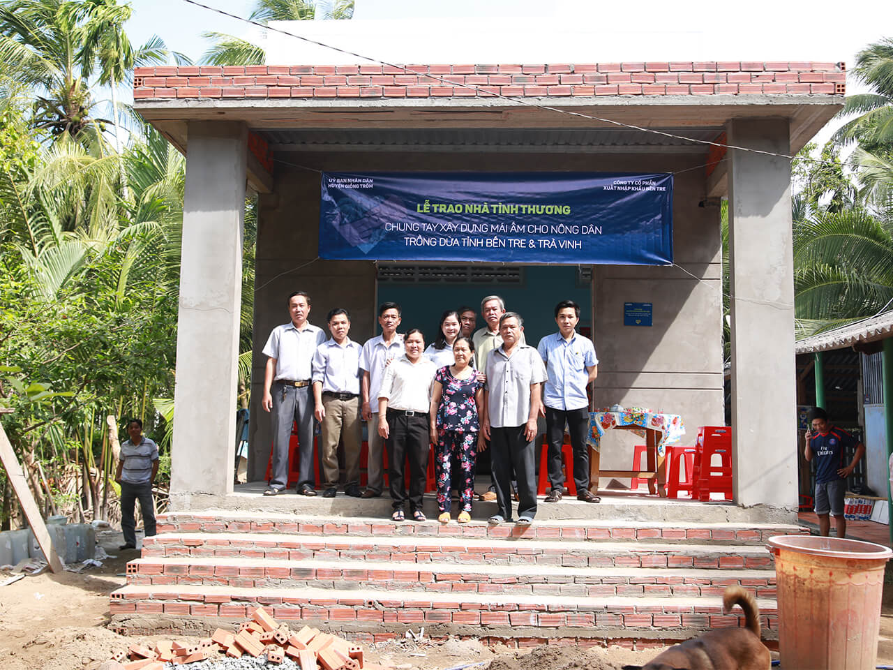 在檳椥和茶榮省为种椰子的农民共建爱心房屋