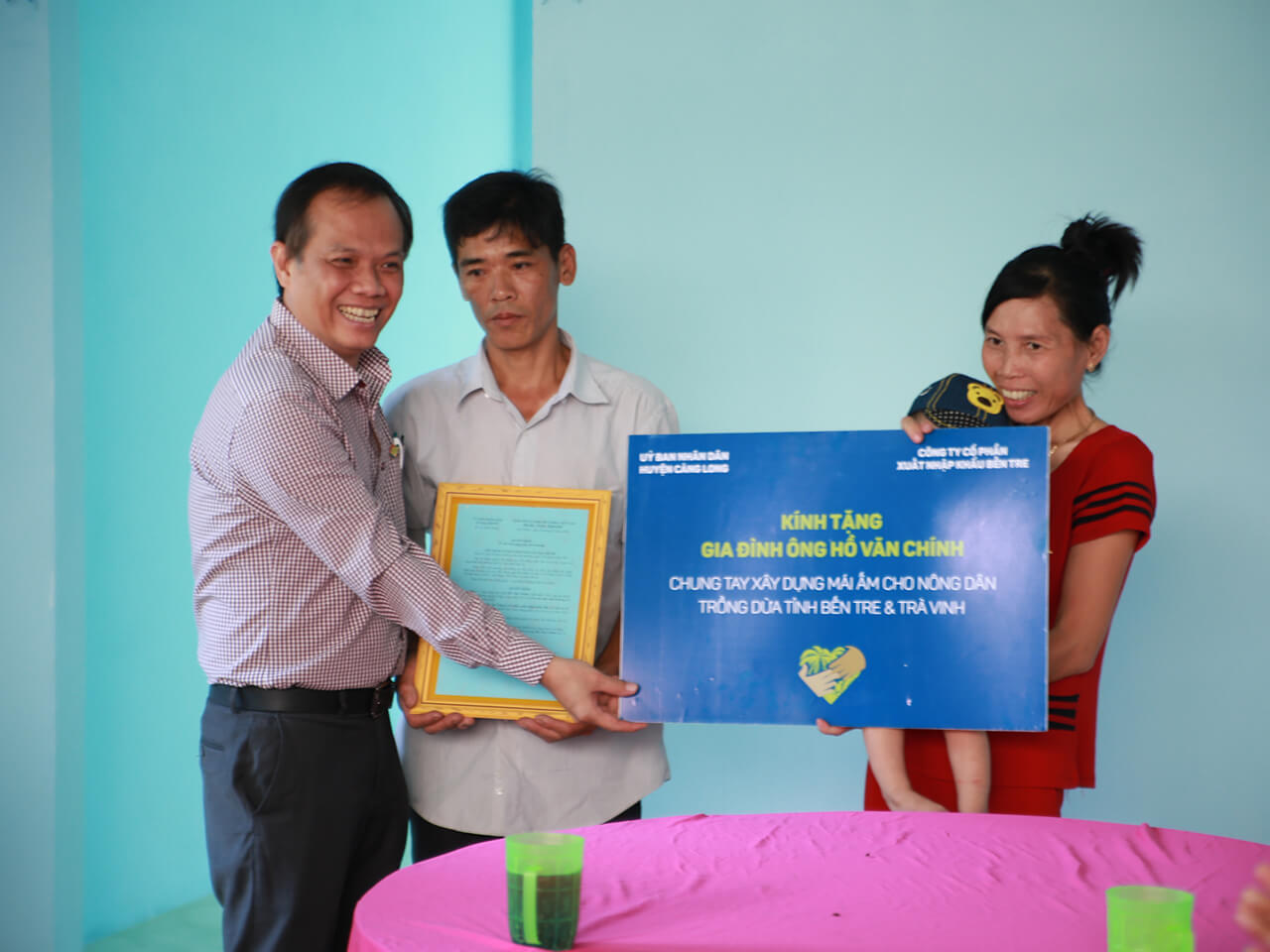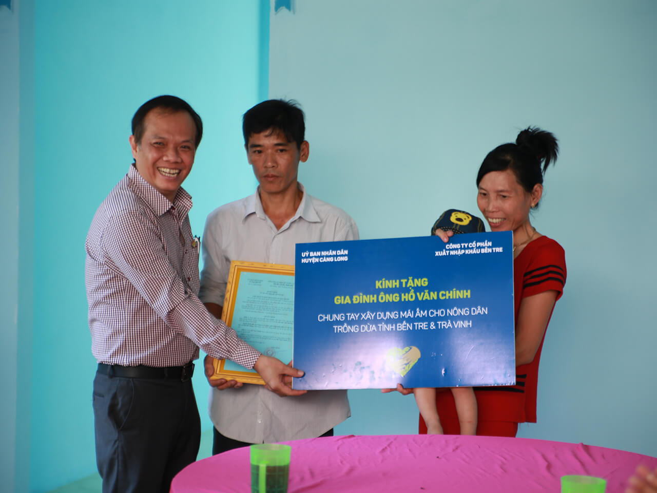 12/12上午,在垅簪县人民委员会在平大,垅簪和冈龙县领导的参与下组织该计划的正式宣布仪式。在仪式的热烈气氛中,Betrimex向Organic椰子原料区包括周兴社,泰来社,荣贵东社,荣贵西社,大福社,盛富东社,兴礼社,兴丰社和新利盛社等9个公社的椰子农户赠送了09栋爱心房屋,每栋价值45,000,000越南盾。在此支持下,Betrimex希望这将在一直陪伴并爱护Betrimex的农民是有意义的礼物。